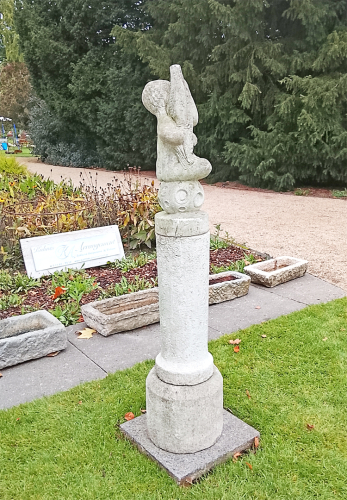 Eine stilvolle Brunnensäule, welche einmal mittig in einem Brunnenbecken verbaut war.