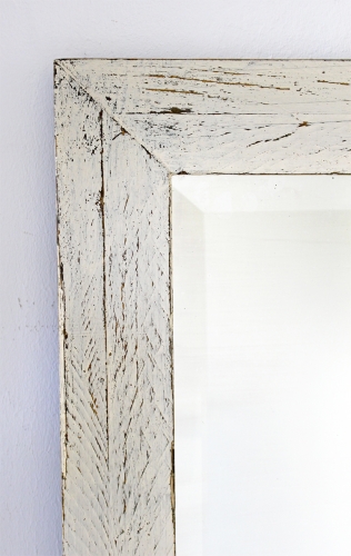 Dieses rustikale Spiegelmodell ist aus altem, verwitterten Holz gefertigt.